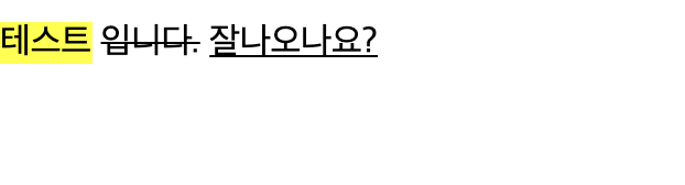 <p> <mark>테스트</mark> <del> 입니다.</del> <ins>잘나오나요?</ins> </p>