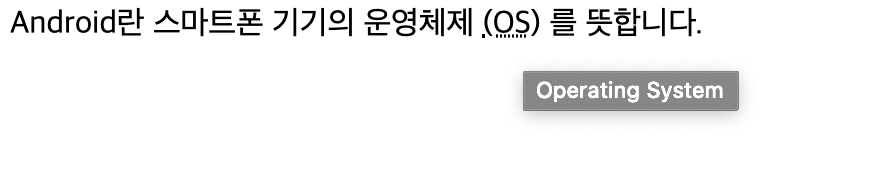 이렇게 OS라는 글씨에 밑줄이 그어지고 마우스를 올려보면 저장해놓은 글씨가 나옵니다.