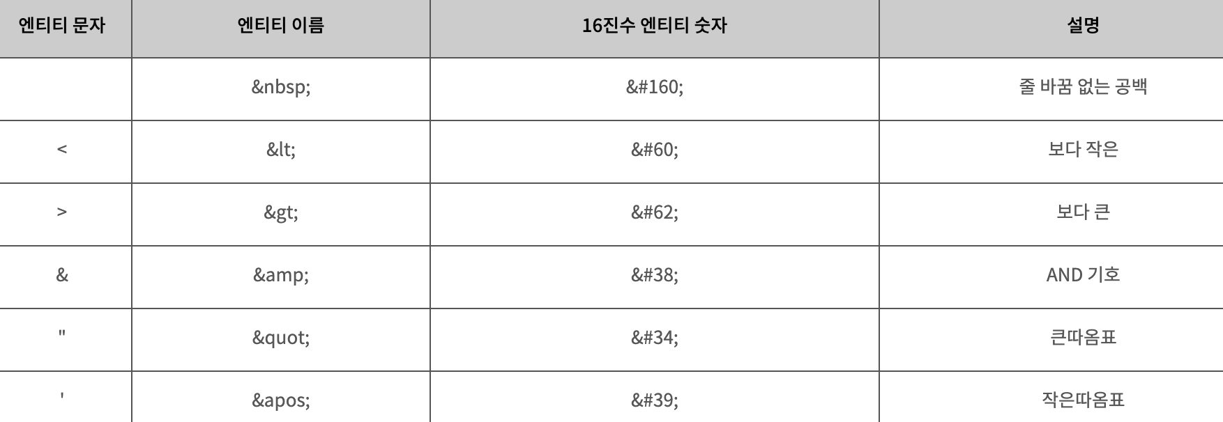 해당 표를 참고하여 코드와 대조하셔서 보시면 이해가 편하실겁니다.