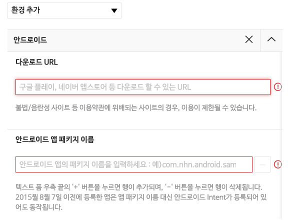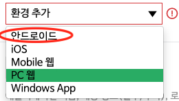 그리고 환경 추가를 눌러서 안드로이드를 선택해주세요.