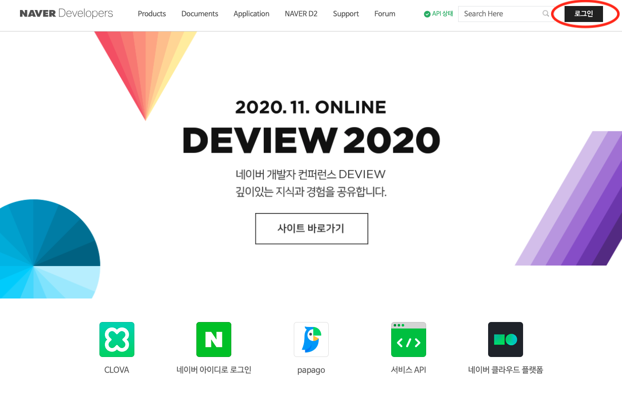 네이버 개발자사이트를 들어가주세요.