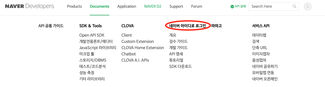 로그인 후 Documents - 네이버 아이디로 로그인을 들어가주세요.