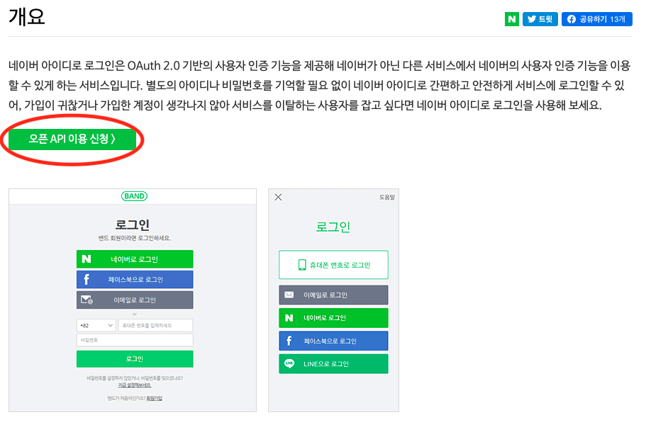 네이버 오픈 API들을 활용해 개발자들이 다양한 애플리케이션을 개발할 수 있도록 API 가이드와 SDK를 제공합니다. 제공중인 오픈 API에는 네이버 로그인, 검색, 단축URL, 캡차를 비롯 기계번역, 음