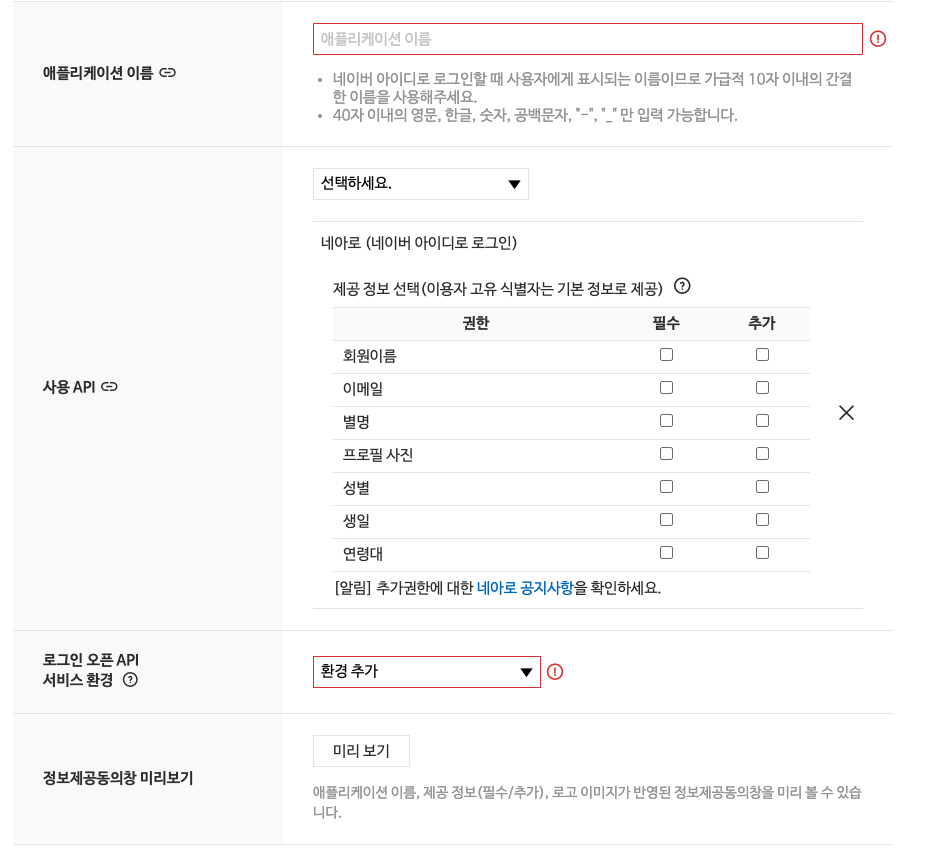저같은 경우는 회원이름, 이메일,별명, 프로필사진 을 필수권한으로 두고 나머지는 추가로 뒀습니다.
