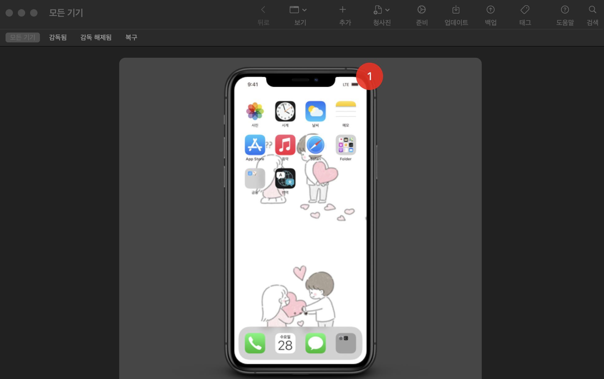 맥과 깔고자 하는 디바이스를 케이블로 연결해주시고,