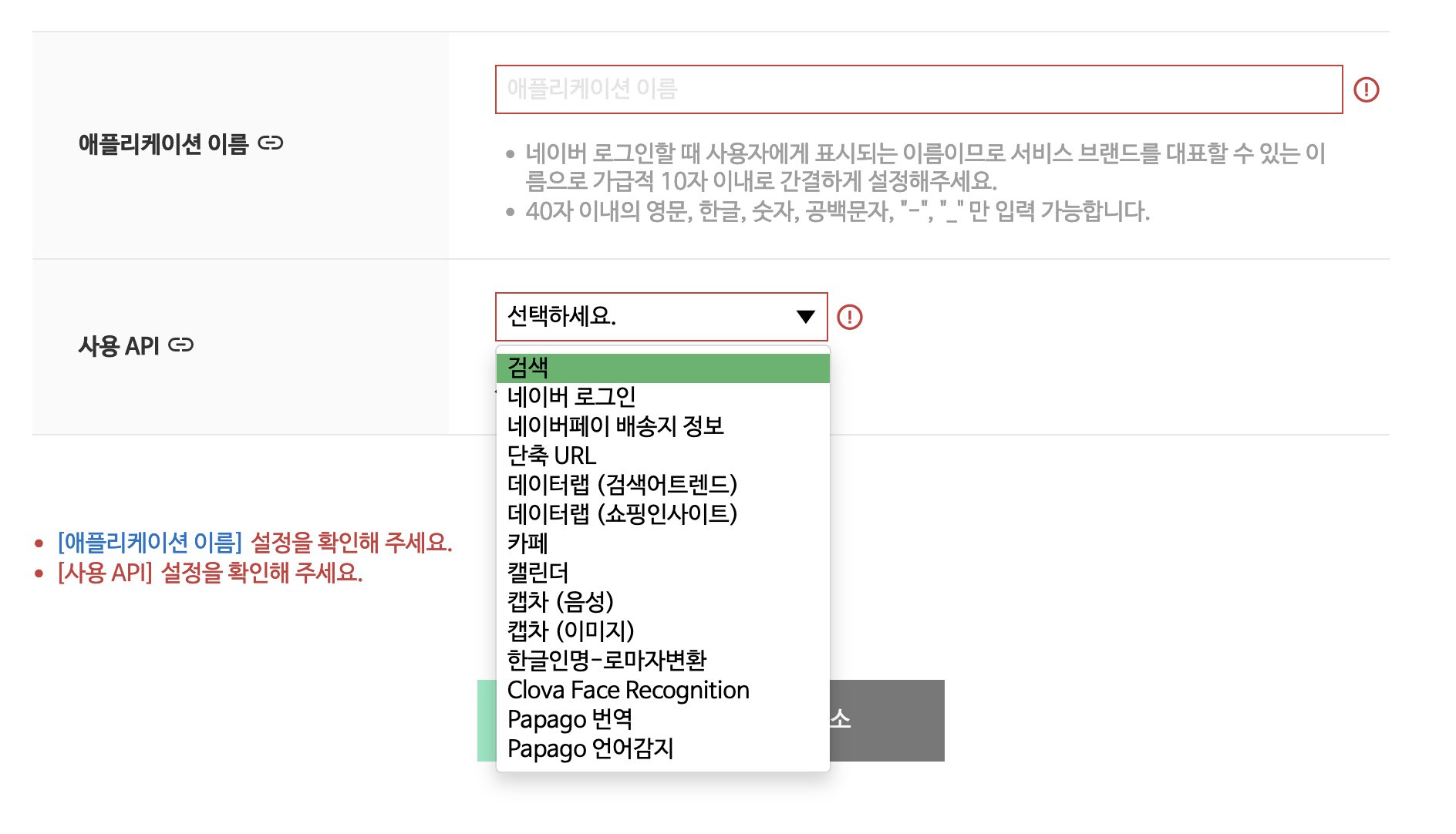앱 이름과 사용 할 API에서 네이버 로그인을 골라주세요.