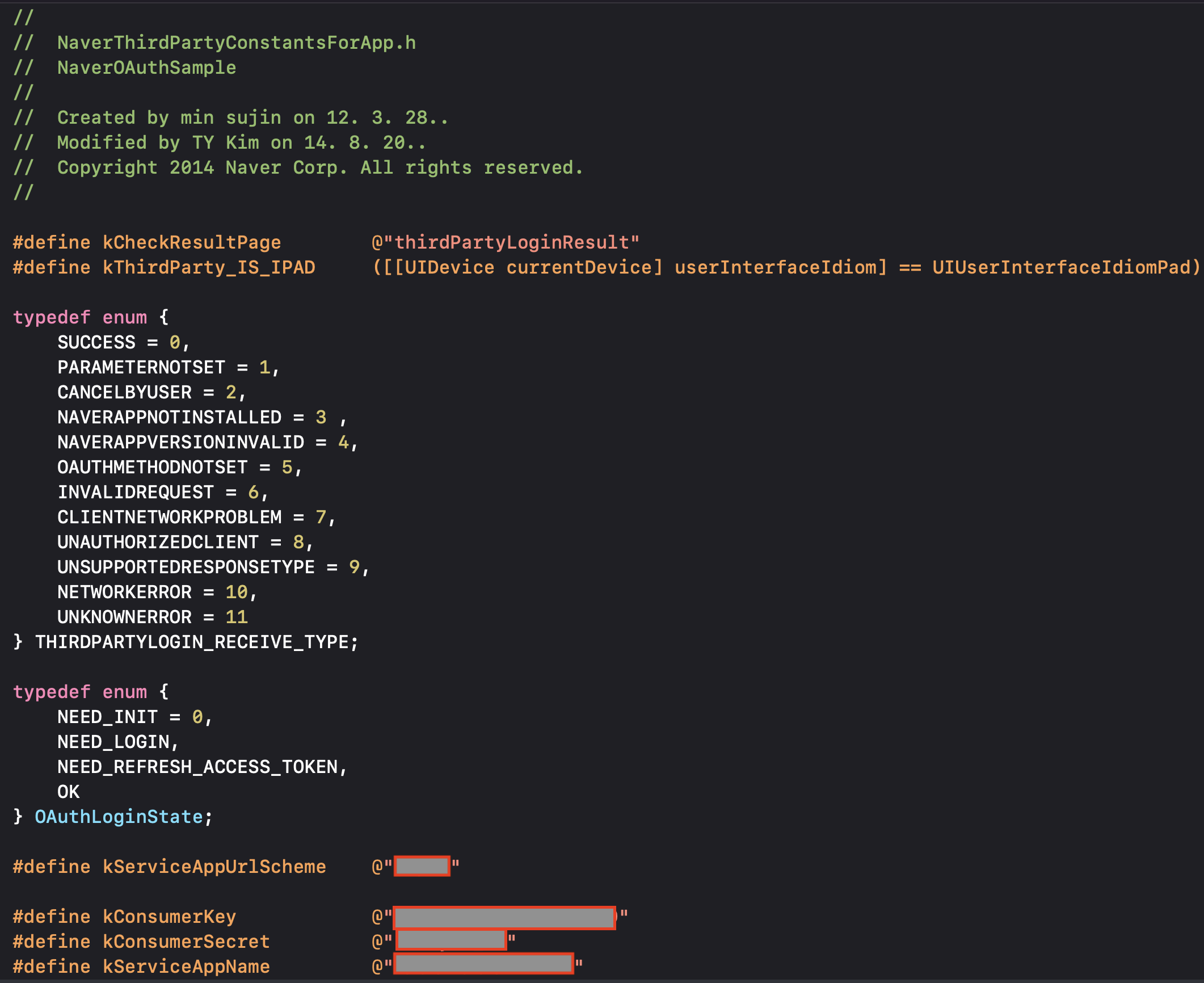 kConsumerSecret (네이버 개발자 사이트에있는 Client Secret)