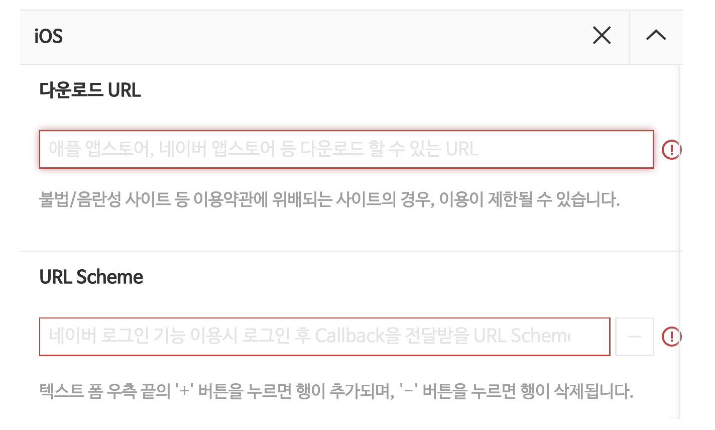 다운로드 URL과 URL Scheme를 입력해주세요.
