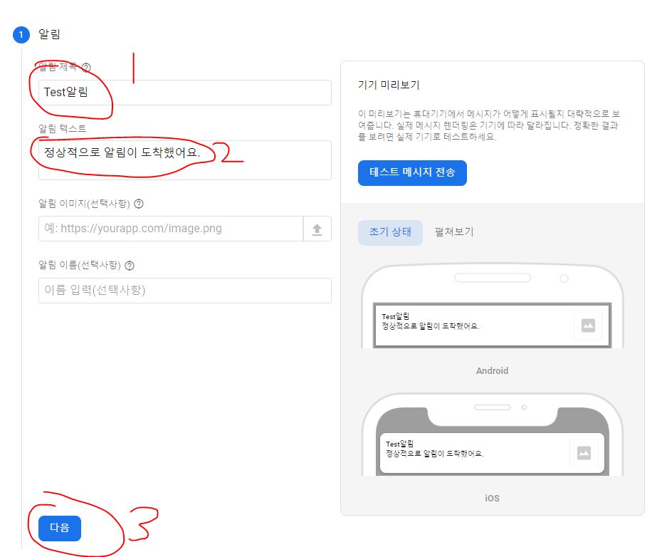그리고 다음 다음 누르면서 진행해주면 정상적으로 푸시알람이 작동됩니다.