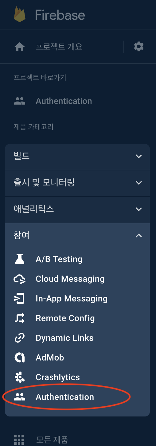 다음으로 파이어베이스 콘솔에서 간단한 설정 해줄게요.