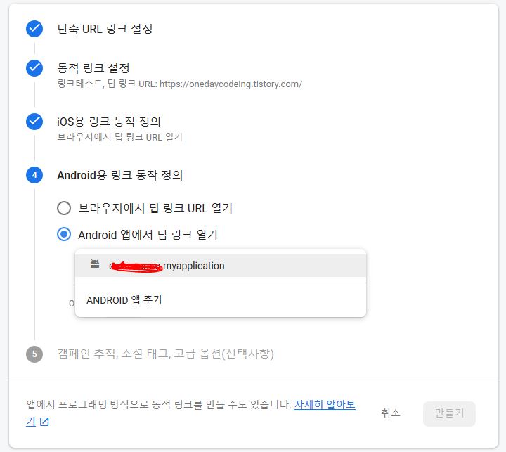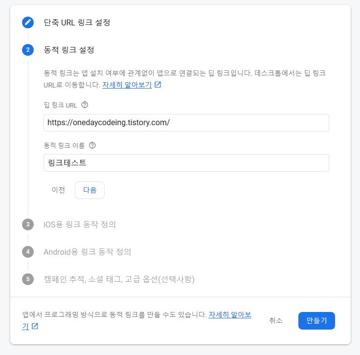 이런 화면이 나오는데요 새 동적 링크 만들기를 해주세요.