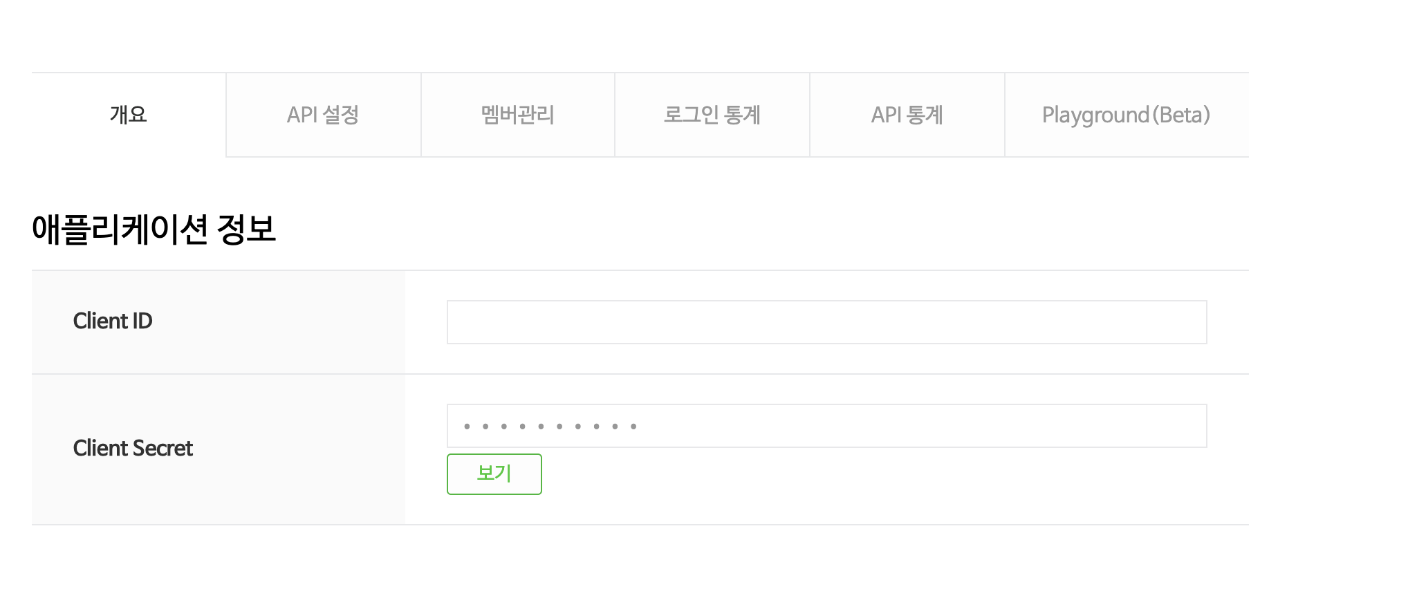 Client ID 및 등록 할때 적어놓은 Application명이 보입니다.