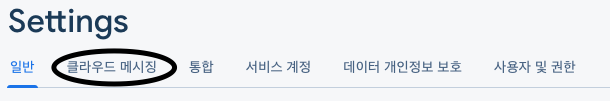 그리고 클라우드 메시징을 클릭해주세요.