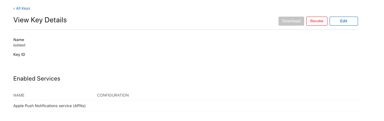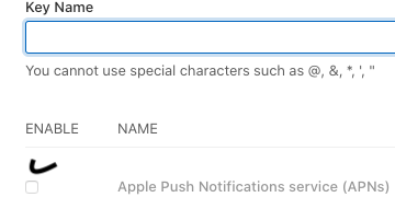 Key Name를 작성해주시고 / Apple Push Notifications service(APNs) 를 클릭해주세요.