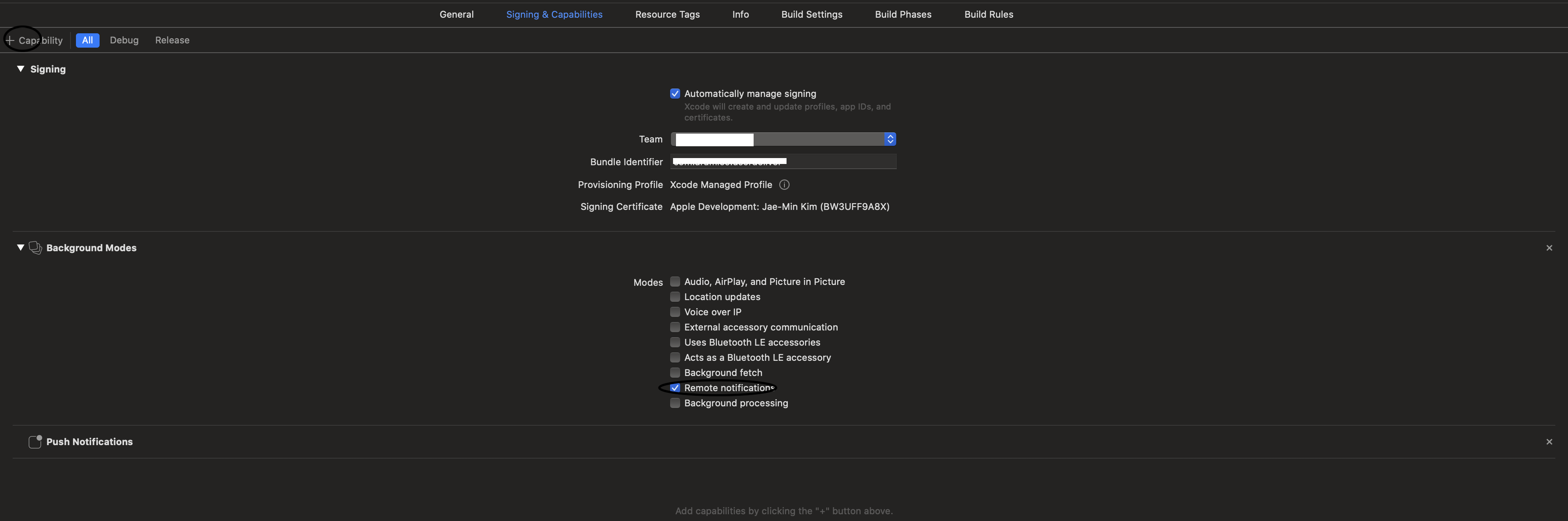 Push Notifications를 추가해주세요.