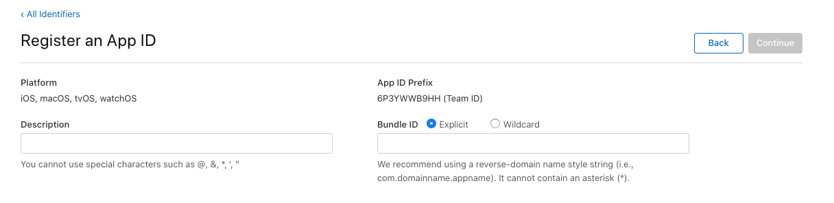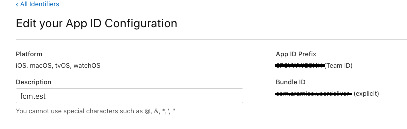 왼쪽에는 구분할 그냥 이름을 지으시고 오른쪽에는 번들아이디를 적어주시면됩니다. (안드로이드로 치면 패키지명)
