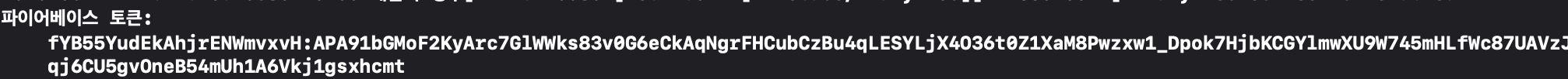 FCM등록 토큰 추가를 클릭 후 아까 추가하신 코드를 실행하셨다면 Xcode아래 로그창에 토큰값이 불라불라 찍혔을겁니다.